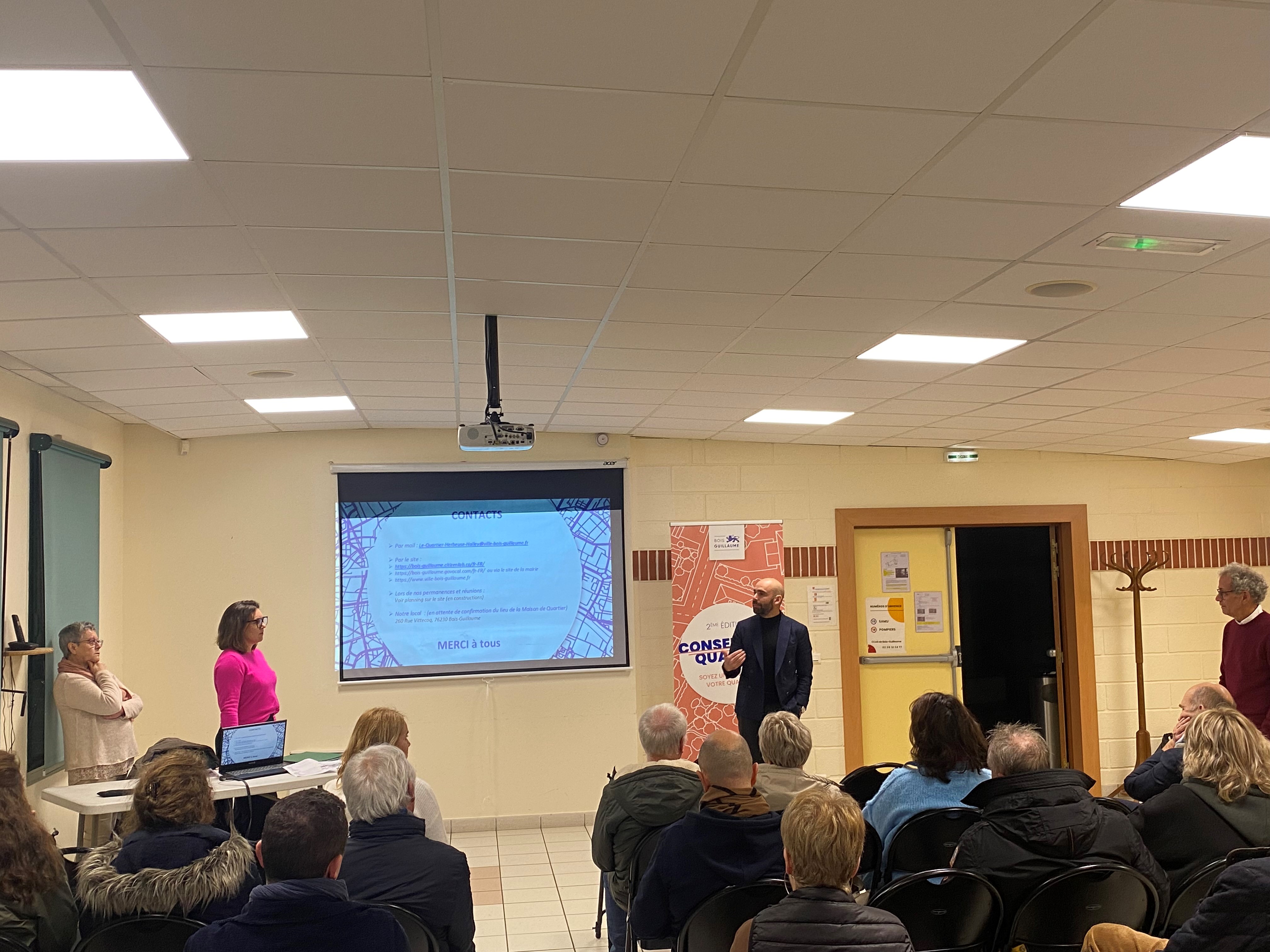 Au programme une présentation faite par l’équipe du conseil de quartier (que vous retrouver en pièce jointe), puis des échanges avec Monsieur le Maire sur divers thèmes concernant la ville et plus spécifiquement sur le quartier :