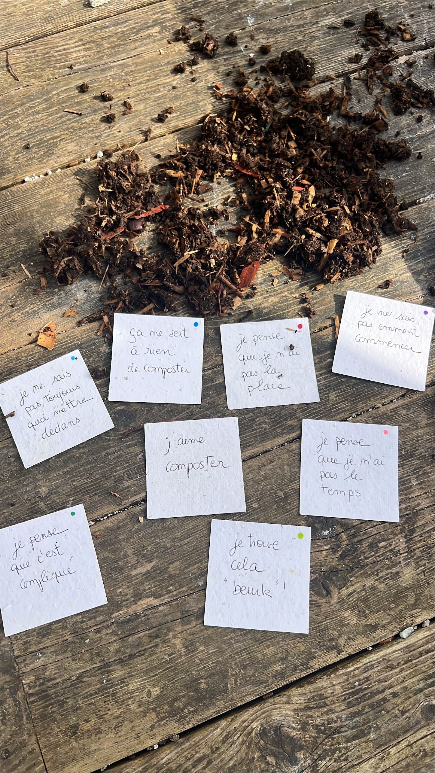 Nous avons commencé par partager nos expériences et nos ressentis autour du compostage : pourquoi certains d’entre nous aiment composter, ce que cela apporte au quotidien, mais aussi les raisons pour lesquelles d’autres pensent ne pas pouvoir le faire (manque de place, d’habitude, ou simplement par méconnaissance). Ces échanges ont permis de lever quelques idées reçues et de montrer que chacun peut trouver une manière simple de participer.